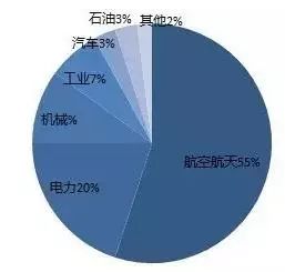 在众多应用领域中,航空航天仍然占据最重要地位,占需求总量的55%,其次是电力行业,占比达20%。