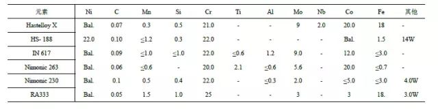 燃气轮机用高温合金的成分。